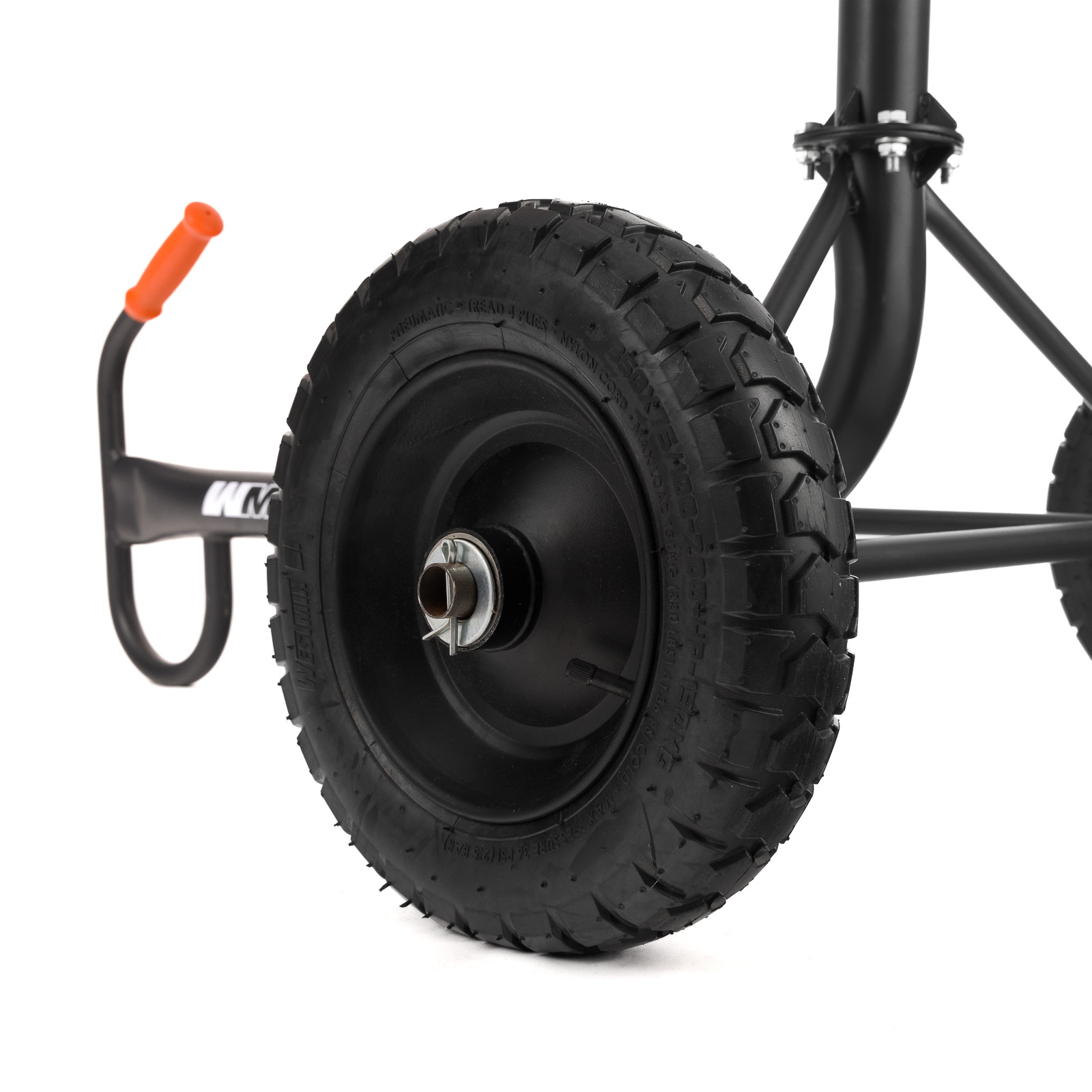 Wheels | 10” solid rubber wheel with heavy duty tread and steel rim |